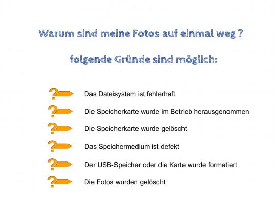 Fotos haben oft einen unbezahlbaren ideellen Wert. Ob dies nun Kinderfotos aus vergangenen Tagen, Hochzeits-Bilder oder Ferien-Aufnahmen sind, sie erinnern uns an schöne Momente in unserem Leben. Werden diese nun irrtümlich gelöscht oder ist ein technisches Problem am Speichermedium vorhanden, ist der emotionale Schaden gross - meist unersetzbar.